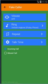 - Choose the name of the caller, time, image, false voice and ringtone for new simulated and false call.