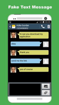 You can send fake sms or fake text messages to yourself, or can make a fake sms/ text messages from other person. The most professional fake text message and SMS/text application in Market! Get out the trouble, give yourself a fake-text message or sms (text messages)! This app Simulate a fake text message to rescue you from an awkward situation The fake text message sms is totally FREE. Want your friends think you are getting an important SMS and you still prefer them over celebrities Like President or any other celebrities? Fake SMS helps you to select a contact from your contact list or enter new contact. One can also select time for receive sms and set up multiple fake sms for different timings.