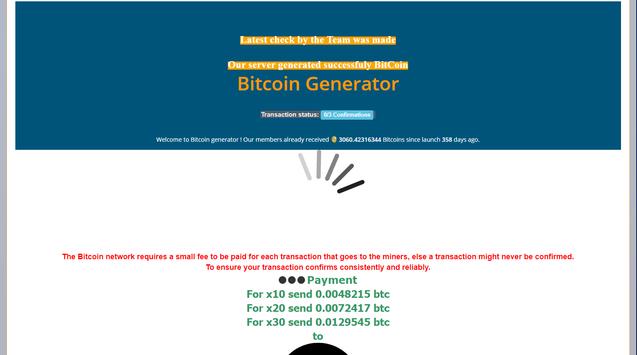 Welcome to Bitcoin generator ! Our members already received 3060.42316344 Bitcoins since launch 358 days ago.