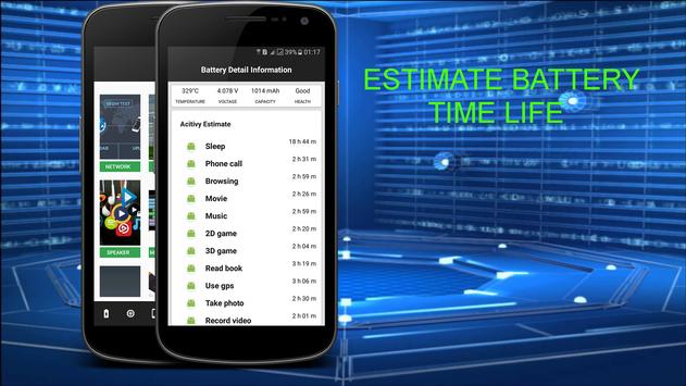 Battery Life - Fast Charging is unique application on Play Store to measure Battery Health, displays Device Information (General, CPU, GPU, MEMORY, STORAGE...), comes with many tools to test your device (Screen Dead Pixel, Camera, Speaker, Microphone, Headphone…) According to these information, you will always know when your battery or charger must be replaced and your device’s health.