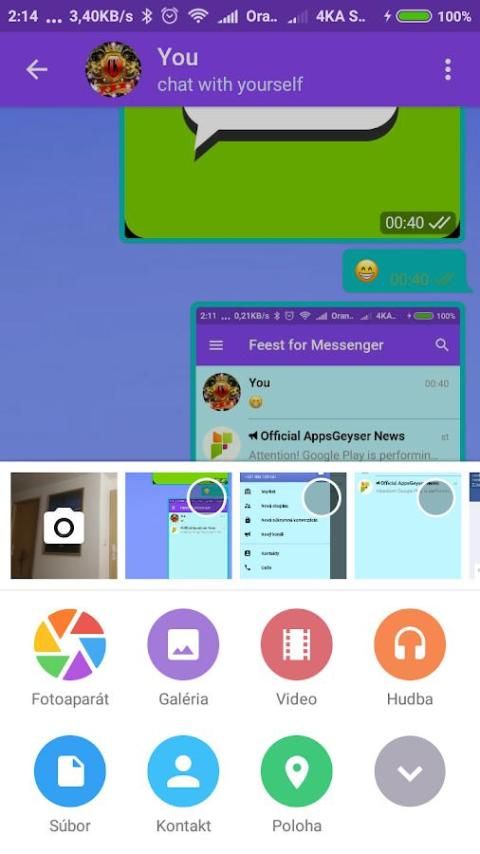 Unlimited: You can send media files and, without any restrictions on their type and size. Celá chat history will require no disk space on your device, and will be securely stored in the cloud, as long as you need.