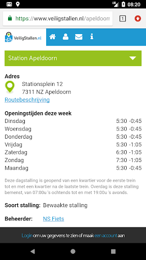 Klikken op een stalling geeft je de mogelijkheid om de route naar een stalling te vinden en meer informatie over de stalling te bekijken. Bij voorbeeld welke services beschikbaar zijn in een stalling.