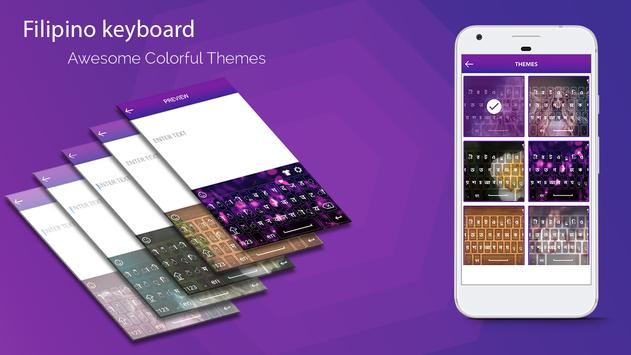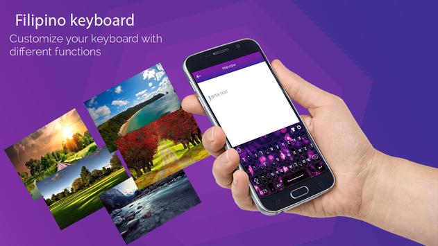 Enable and Switch to Filipino Language. Customize theme and background. Put your photo behind keyboard background.