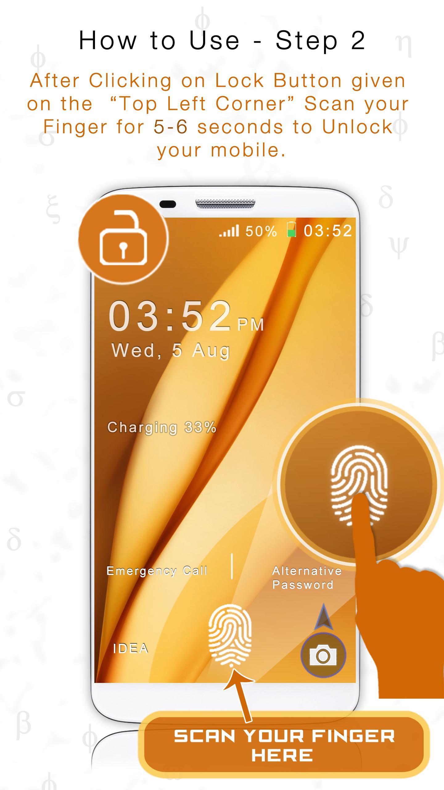 This app is intended to simulate a Fingerprint Lock Screen and is not a Real Fingerprint Lock Screen, We do not provide biometric screening using this app & this Screen Lock does not scans your fingerprints. There is a trick in this Scanner App to unlock your phone by which you can prank with your friends and take them for a ride or make them fool that you have real biometrics fingerprint lock.