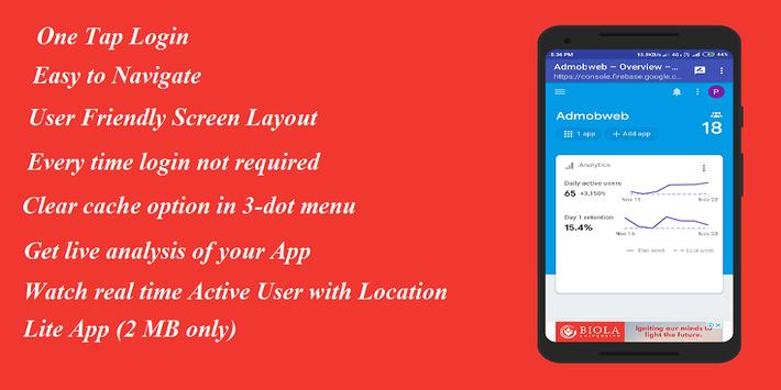 Firebase console lite App(2MB).Use Firebase app to access your Firebase console