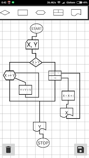 FlowChartoidは、使いやすいドラッグ&ドロップメカニック、シンプルで強力なUI、および最も一般的に使用されているフローチャートの形図形を、スタート/ストップ、入力などの最も一般的に使用されているフローチャート図形状をユーザーに描画できるようにするためのオープンソースで無料のAndroidアプリケーションです。、決定、プロセス、whileおよび出力。