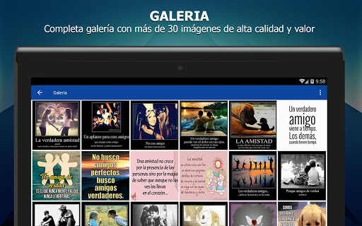 Nuestra aplicación te ofrece muchas frases para amigos hombres y lo mejor de todo es que puedes veras incluso si tu dispositivo no cuenta con Internet, así siempre tendrás tus imágenes disponibles sin limitaciones.