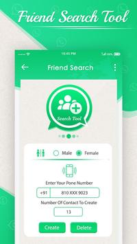 This Friends Search Tool for Whatsapp Number is the best app find girl number with a simple tap on your mobile screen. In this application, App with get direct contacts in your contact list. Make more closer your friends with this contact maker application which is totally free to use. It has simple User Interface to use app.