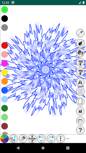 - 対称モード - すべてのブラシ、ラインスタイル、および提供されたすべての形状を統合する強力なモード。必要に応じて、すべてのツールを組み合わせることで、任意の対称画像を描くのに役立ちます。