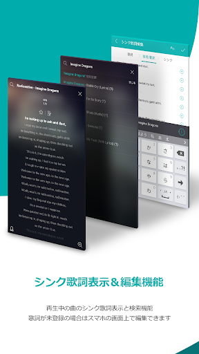●再生中の曲のシンク歌詞を選んで表示したり、検索することができる「シンク歌詞ビューア」