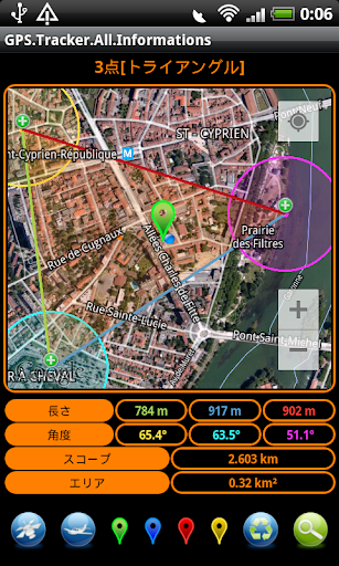 これらのGPSツールの処理は、距離、面積、長さ、周長、角度、経路、注目点、交差点、投影点、高さ、対角線、メジアン、二等分線、内接円、外接円、