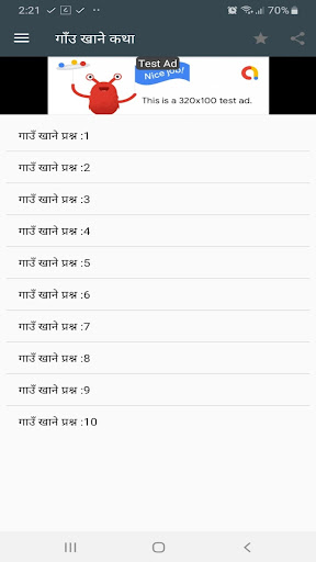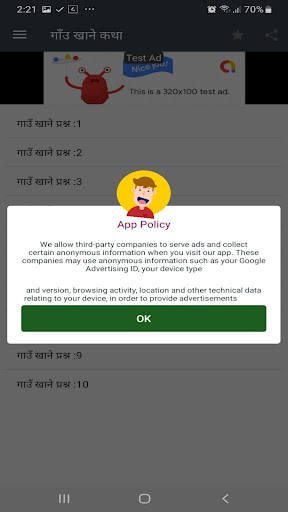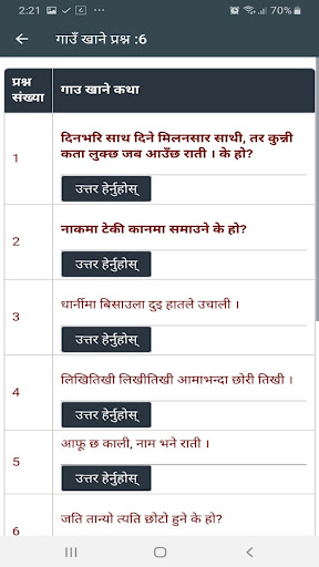 Gau Khane Katha Nepali App:Gau Khanekathaは通常Nepali Funny Riddlesで、Gau Khane Kathaは主にネパリ幼年期コミュニティで主に演奏されていて人気があります。Nepali完全Gau Khane Kathaに尋ねて答えることで、2人以上の友人の間で演奏されています。