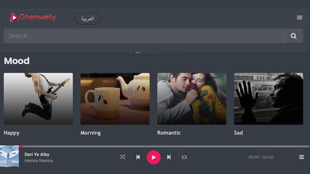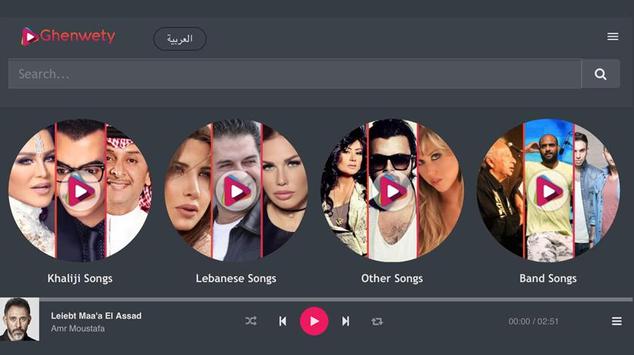 Ghenwety is a digital music service offering users a huge library of different Arabic and International songs on various record labels from a laptop, smartphone or other device.