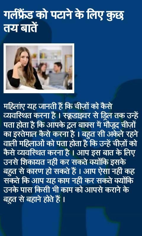 So read tips in this app which helps you to get a girlfriend to be it marriage, live in, friendship, family relationships you need to work at it to make it meaningful and better for both of you.