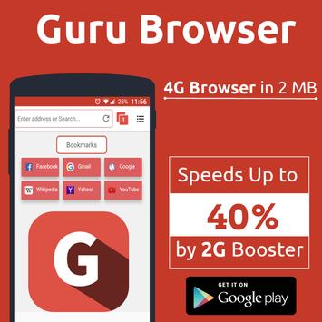 ✦Guru Browser is designed to support speed browsing in 2G networks, as well as will prove its efficiency in 4G network (4G/3G/WiFi).