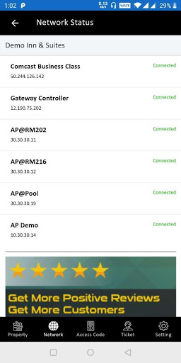 This app helps hotel staff to manage and monitor Hotel Wi-Fi network status, Monthly password, Bandwidth usage report, support ticket usage report and much more..