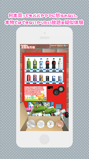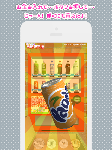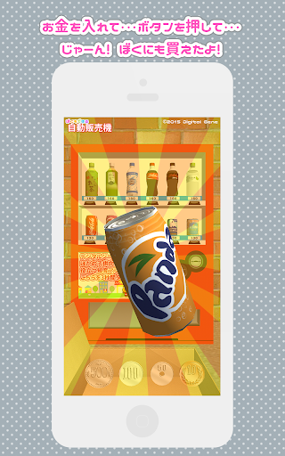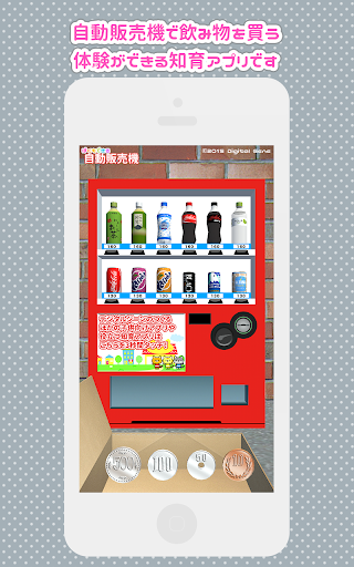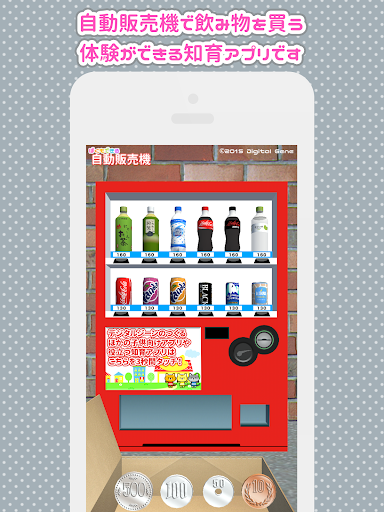 自動販売機で飲み物を買う体験ができる知育アプリです。 お金を入れる、ボタンを押す、商品を取り出す、お釣りを出すという動作が可能です。 何本買ってもパパやママに怒られない。本物ではできないやりたい放題を疑似体験!