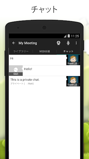 会議室を作成し、遠く離れた参加者に招待メールを送信することができます。参加者はカメラを通じ、顔を見ながらリアルタイムに会話できます。デスクトップ版ISL Groopと併用すれば、PCの画面やPowerPointスライドの共有が可能です。