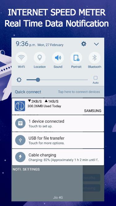 - Notfication Appears in your device which tells realtime internet speed.