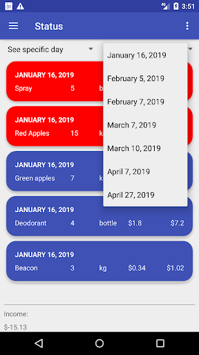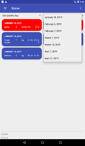 フィルター(日、月、またはすべて)を選択して、収入シートを抽出します。