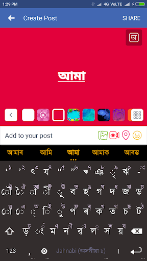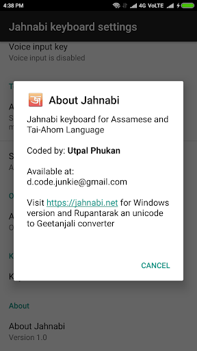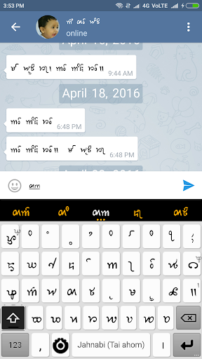 Jahnabi Android版は、Tai Ahom Language Supportの最初のAndroidキーボードです。また、2つのアッサムレイアウトとQWERTY英語レイアウトもサポートされています。 Jahnabiには、人気のあるフレーズの単語の提案とショートカット機能があります。現在、Tai Ahomサポートは、インスタントメッセージングアプリケーションであるSkylarkと呼ばれるアプリを通して可能です(電文のフォーク)。 Jahnabi Ahom Keyboardを使用してSkylarkでAhomを書く必要がある必要があります。 BR>)Texting Jahantoto KnitotaはJahani Budding Permissionリクエストと呼ばれます。使用システムの言語オプションの使用