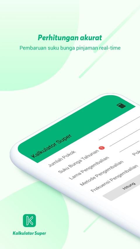 Selamat datang di Kalkulator Super yang dapat membantu Anda menghitung informasi pinjaman Anda. Jika Anda memiliki pertanyaan tentang Kalkulator Super, jangan ragu untuk menghubungi kami. Terima kasih atas unduhan dan dukungan Anda.