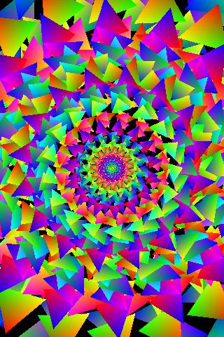 Khali is a caleidoscope made of rotating strips of overlapping triangles. Occlusion of neighbor triangles produces complex, 'flowing' patterns.