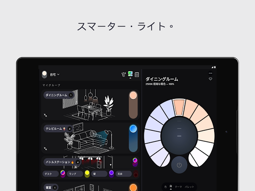 -グループ:「ホームダッシュボード」でのオン/オフや調光のワンタッチ操作など,グループ内のすべての照明が簡単に制御できます。