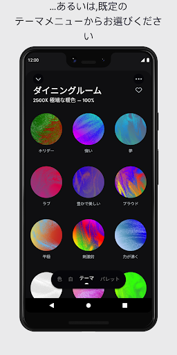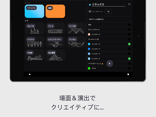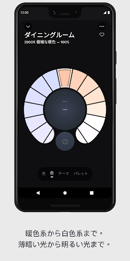 -雰囲気:夕方には暖かい光で心を落ち着け,朝には白めの光で活力を,というようにスケジュールを設定する。