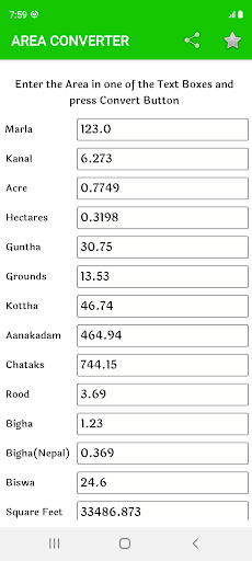 エリアコンバーターアプリは、土地の変換に適していて正確です。土地エリアコンバーター、Zameenコンバーター、Marla Conveter、Hindi Area Converter、Area Converter 2020アプリは13種類の土地ユニットを簡単に変換し、1つの土地ユニットを入力し、このアプリは他のすべての土地ユニットを計算します。