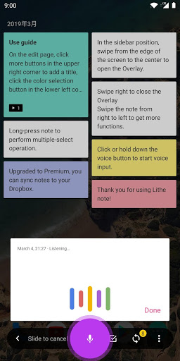 Lithe note is a simple note-taking app. Efficient/convenient is its biggest feature. You don't need to exit the current application. You can slide Lithe note directly on the side and quickly record your precious inspiration through text/speech/image or the world around you, Lithe note will automatically turn what you say into words.