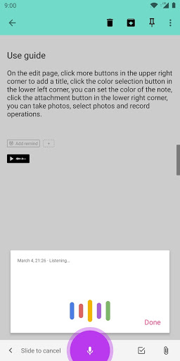 • Microphone: The app needs permission to allow the user to attach audio to the note.
