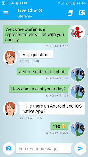 ダウンロード後は、ライブチャット3またはクラウドチャット3のインストールにURLを追加してください。URLはオペレータダッシュボードにあります。あなたのAndroidデバイスからあなたのクライアントをログインして開始します。詳細情報はよくある質問:https://www.jakweb.ch/faq/a/162/native-app-android-and-ios