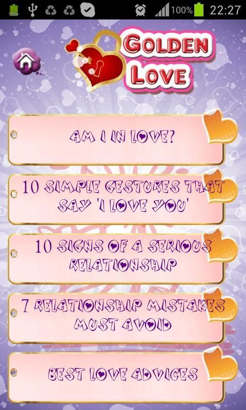 ♥ ღ Golden Love: golden rules to perfect match your relationship, including Best love advices, 10 simple gestures that say I love you, 7 relationship mistakes must avoid, 10 signs of a serious relationship and more. You will become more romantic!