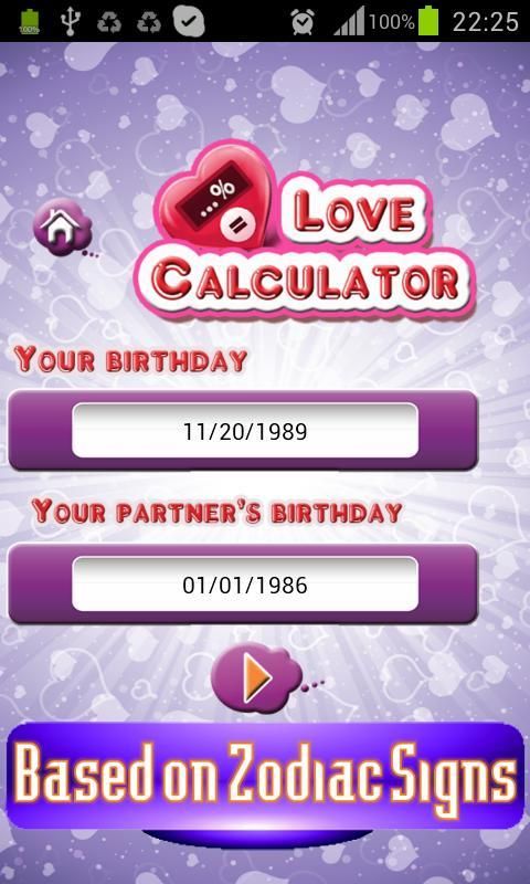 ♥ ღ Love Match: test your love compatibility (love horoscope) based on 12 zodiac signs. It is very funny love game! Enter your birthdates and the cupid will find out more about your destiny and love horoscope.