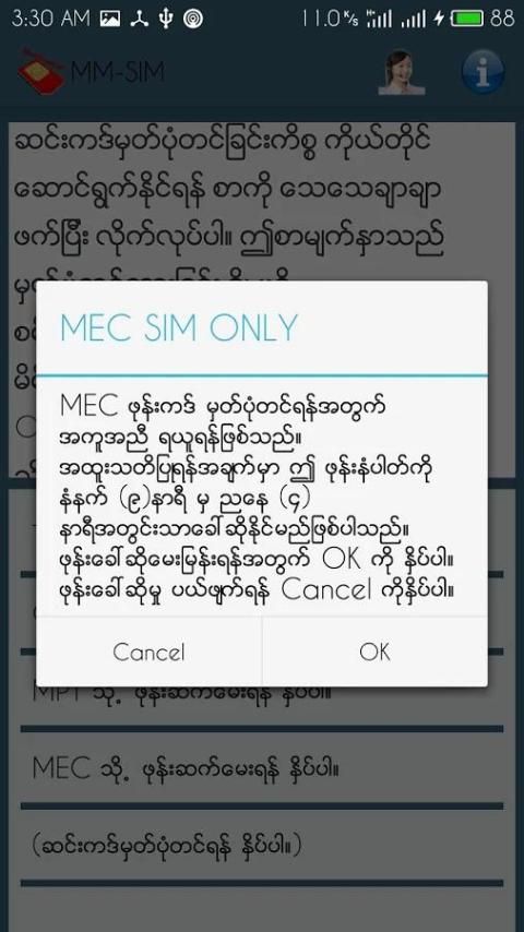 MM-SIM application သည္ ျမန္မာျပည္ရွိ (လက္ရွိ) ေအာ္ပေရတာ အားလံုး အတြက္