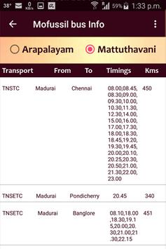 This app provide all information about Madurai mofussil bus, Town bus, Train Details, Flight Details.