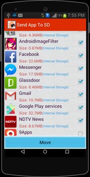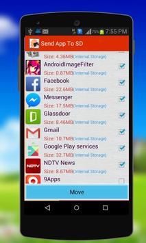 Memory Booster a[[application will help move application from Internal Memory of your phone to external,The app show details about application current installed location along with its size.
