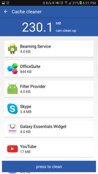 Mobile clean master app. Delete all types of junk files (system cache, image cache, video cache and advertisement cache) to free up the storage space.