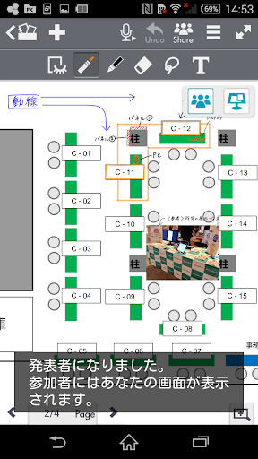 従来の紙の資料のように直接メモを書ける、だけではなく、書いたメモがすべての参加者にもリアルタイムで伝わります。