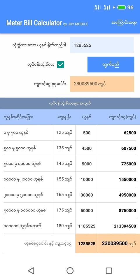 Meter Bill Calculator - မီတာခ တြတ္မယ္