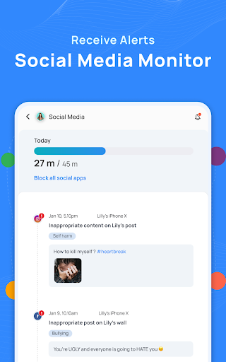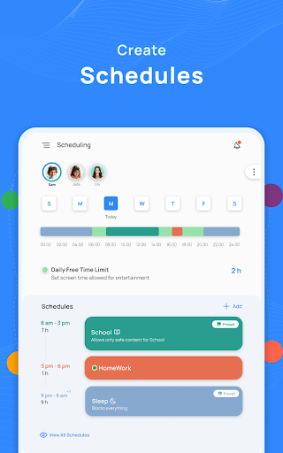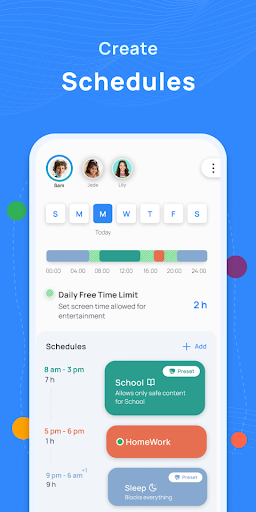 •ブロックスケジュール:それらの期間中に宿題、就寝時間、または家族の時間とロックデバイスのスケジュールを作成します。ゲーム、ビデオ、テキストメッセージアプリ。ネットいじめや略奪的な攻撃を防止します。