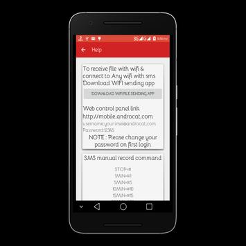 When you install the application, it will start recording all the calls and SMS that you make or the calls that you get. With the awesome user interface you can customize which calls to record and which not to. You can start manual record from web panel/SMS. Automatically save all Contact to web Control panel user also can send get contact request to mobile from web control panel and you can see your contact from anywhere login from control panel. Automatically upload mobile location status to web server at incoming and outgoing call/Voice data connection active.one of special feature this App launcher Icon hide .you can hide your launcher Icon if you want your app only run at background.