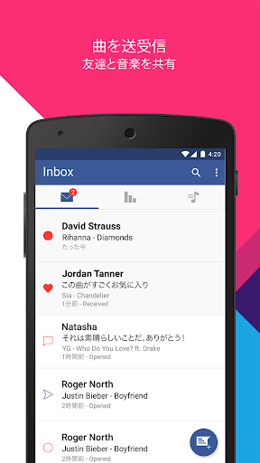 ・ 連絡先に登録された相手であれば誰にでも音楽を送ったり、また相手から受け取ったりすることができます
