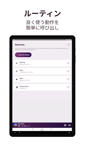 ‐ラジオや外部機器に接続されたブルーレイプレーヤー、CDプレーヤー、USBの音楽コンテンツの配信