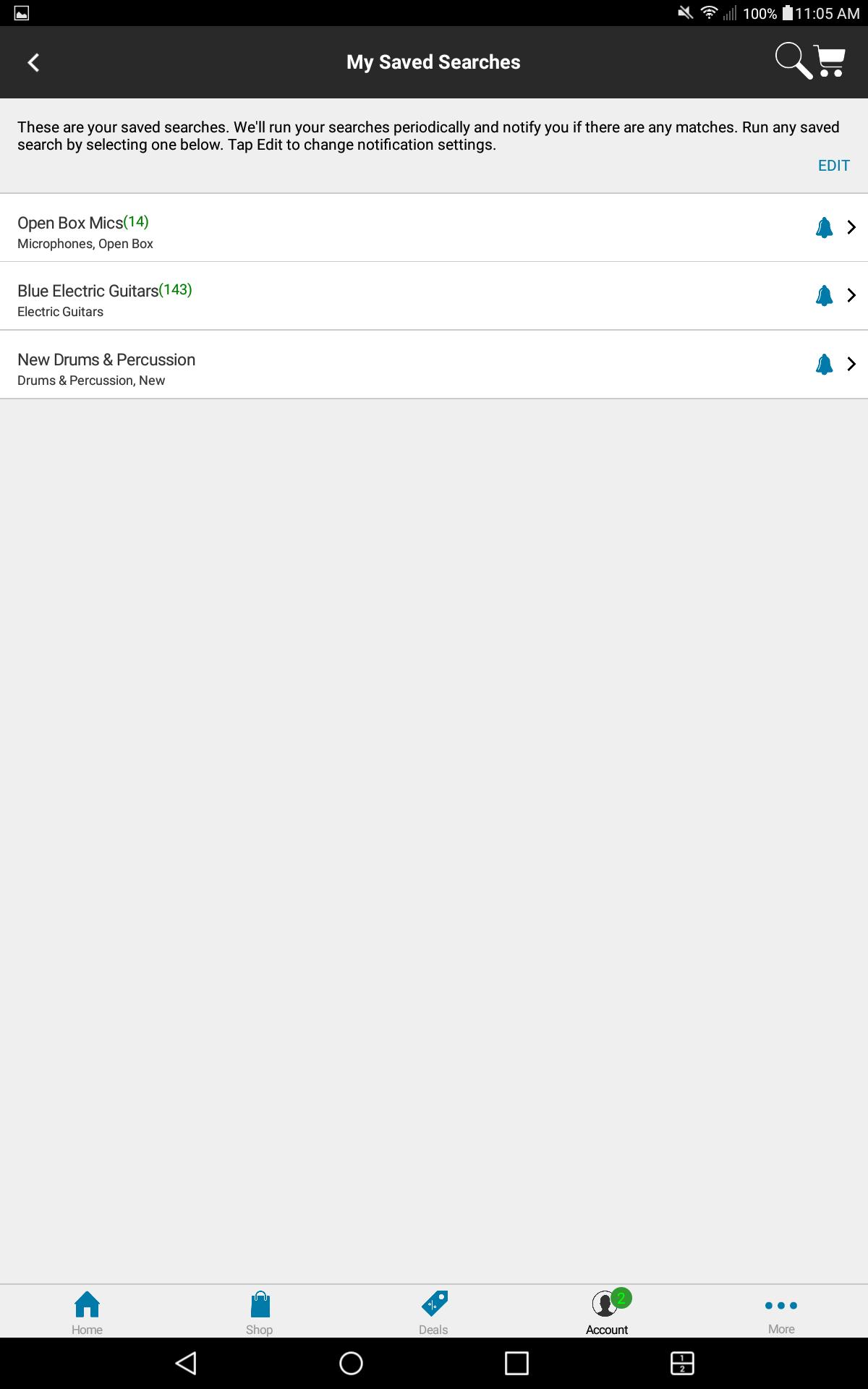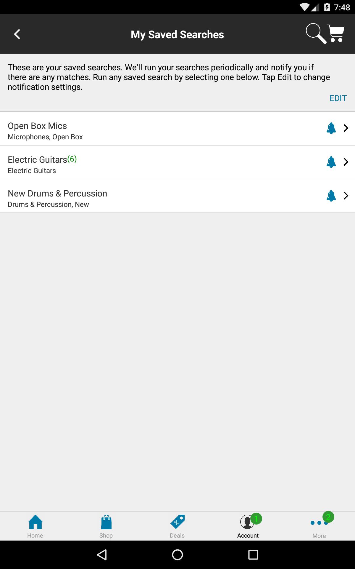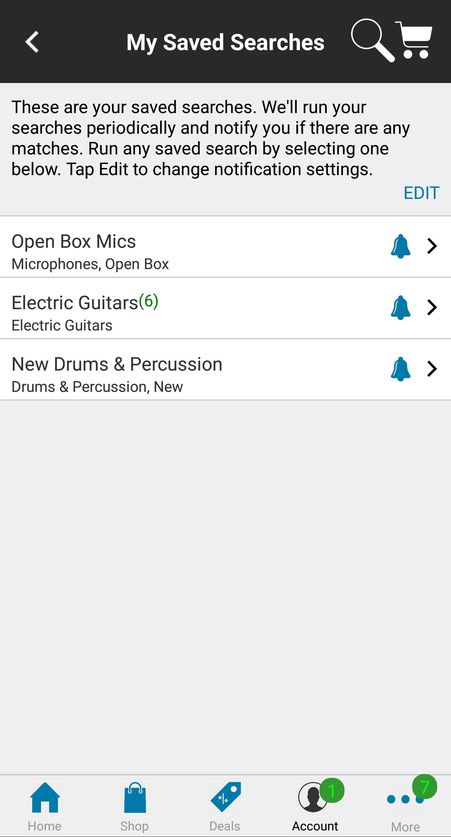 • Enable Stupid Deal of the Day alerts and other alerts under More > Notification Manager menu