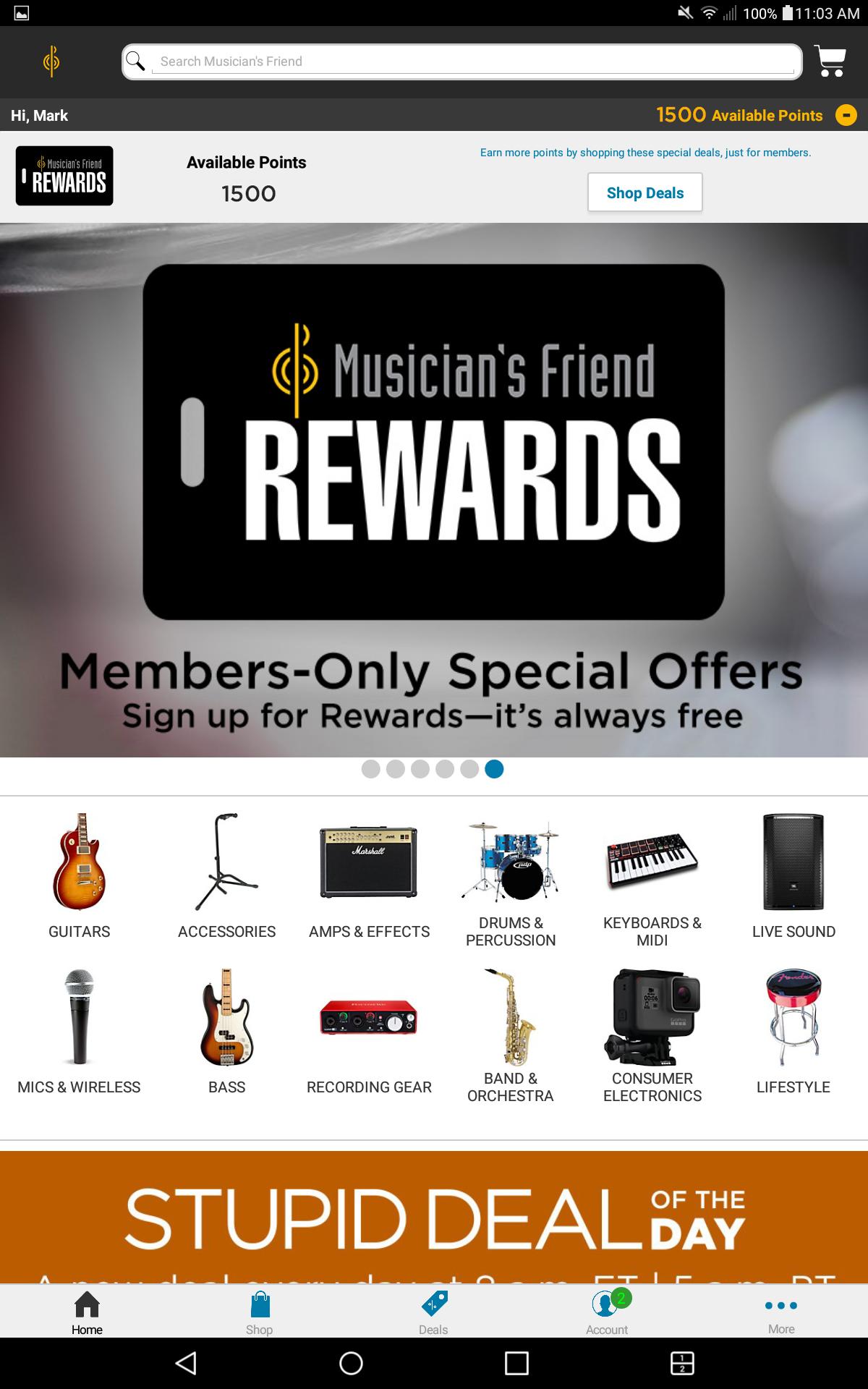 • Grow and manage your points with Musician’s Friend Rewards