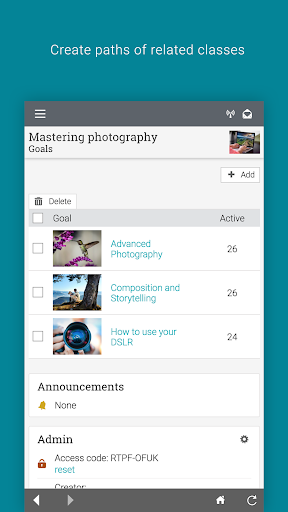 With the mobile app you can access the full feature set of our site , create classes and assignments, connect with students, collaborate, track students progress, and share resources. You can have an engaging and productive LMS experience anytime, anywhere.