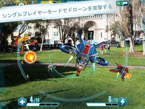 * 互換性のあるスマートデバイスによるソロモードでの拡張現実ドローン戦