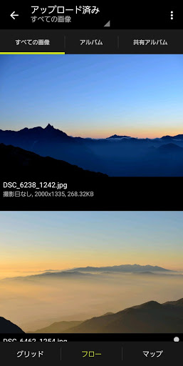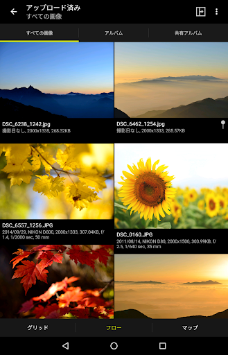 ・NIKON IMAGE SPACEにアップロードした写真も、端末内の写真も見られます。